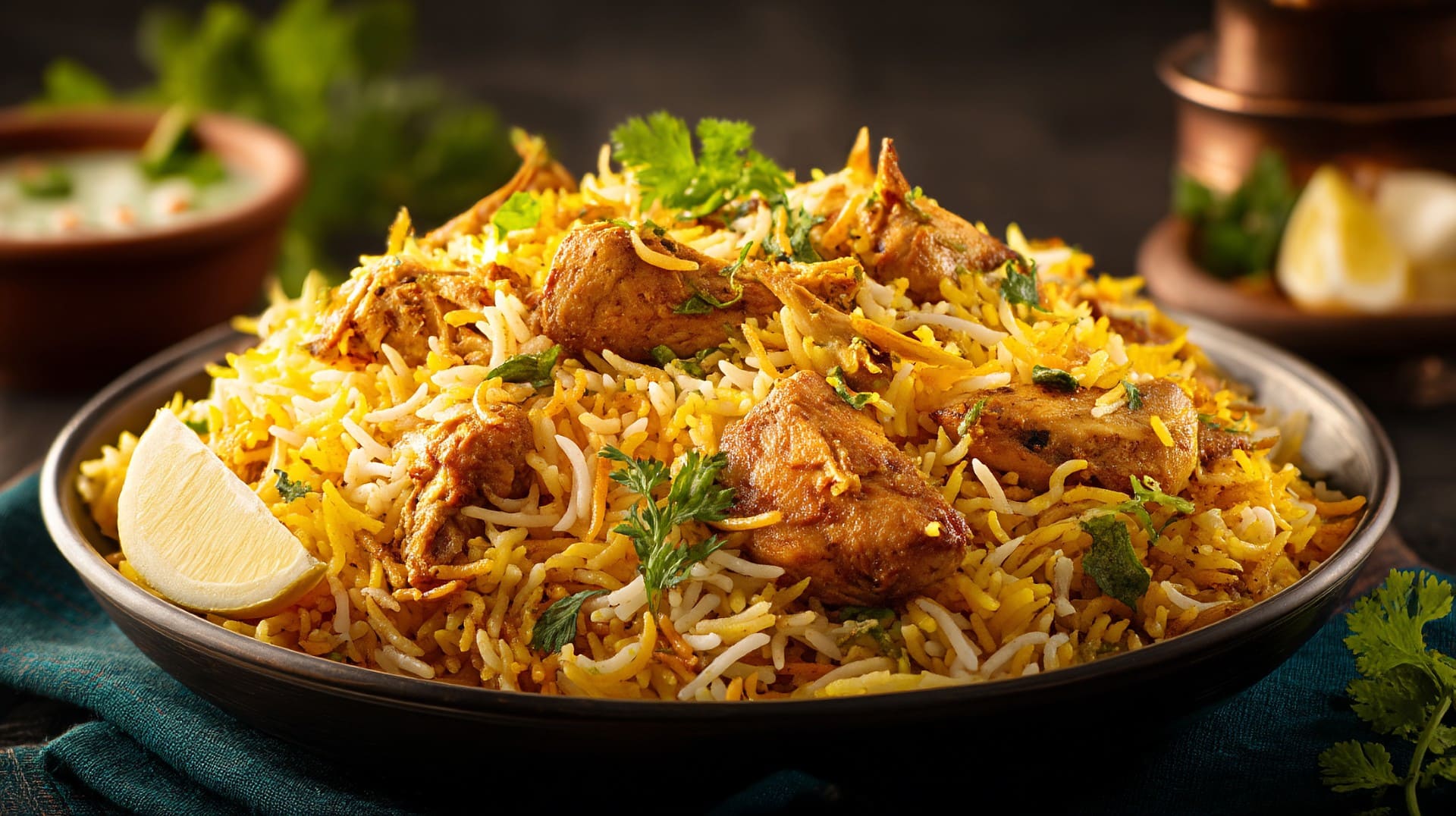 Fragrant basmati rice layered with tender meats and aromatic spices.